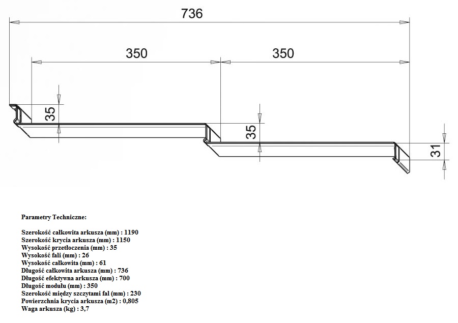 - Wysoka wydajność – każdy arkusz o powierzchni krycia 0,805 m2 pozwala na szybsze prace dekarskie i redukcję odpadów.