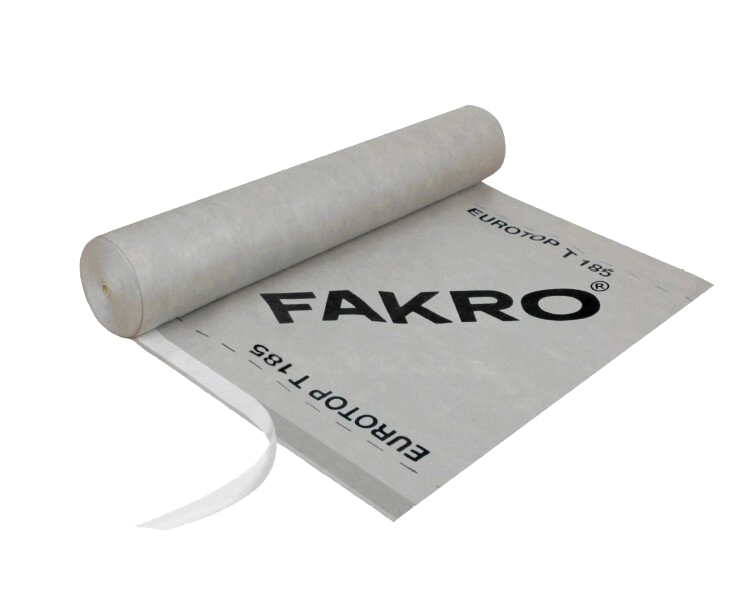 Membrana FAKRO Eurotop T185 to wysokoparoprzepuszczalna membrana stosowana jako warstwa wstępnego krycia uszczelniająca pokrycia dachowe. Poprawia szczelność dachu, zabezpiecza termoizolacje przed zawilgoceniem. W celu ułatwienia montażu membrana posiada zintegrowany pasek klejący.