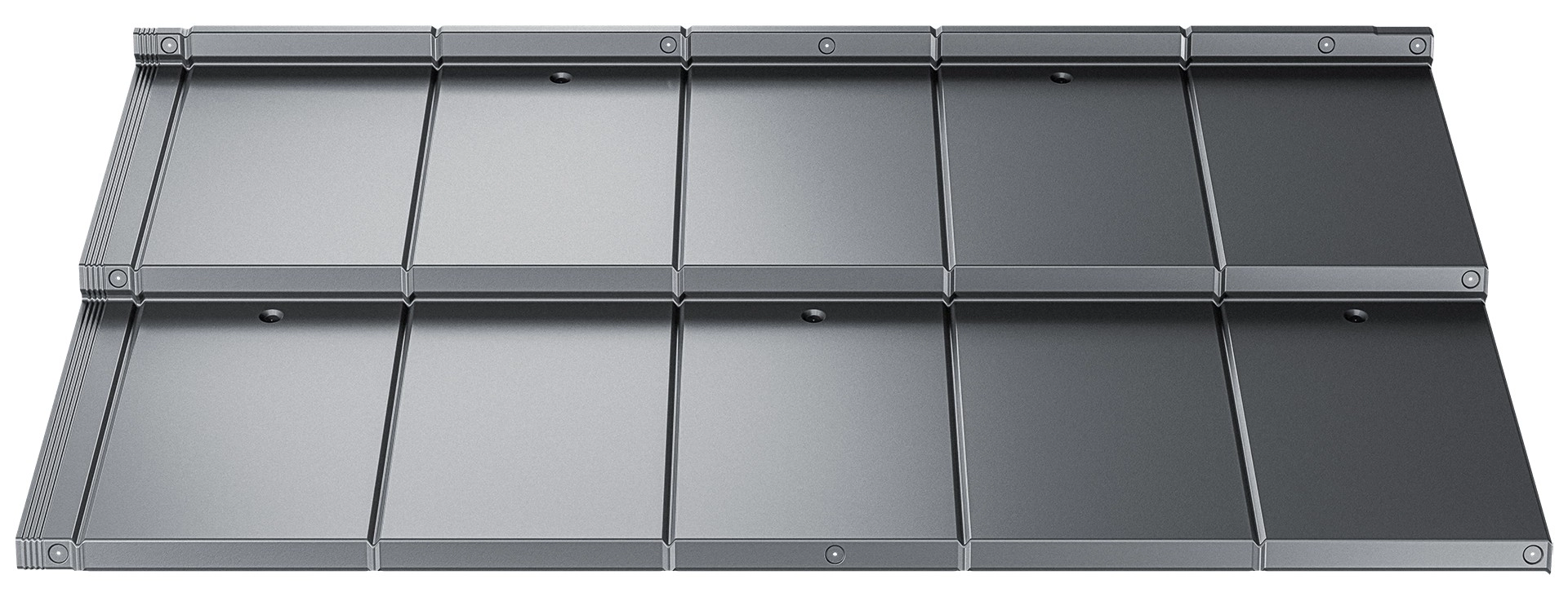- Jest to najbardziej płaska blachodachówka panelowa dwumodułowa na rynku, z wysokością zaledwie 3,5 mm.