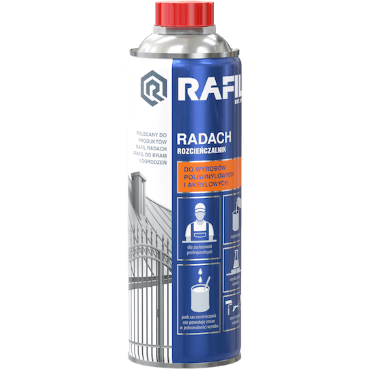 Rafil ROZCIEŃCZALNIK RADACH służy do rozcieńczania wyrobów: Rafil PODKŁAD ANTYKOROZYJNY, Rafil RADACH i Rafil DO BRAM I OGRODZEŃ. Nie powoduje zmian w jednorodności wyrobu. Rozcieńczalnik RADACH stosowany jest do mycia narzędzi po zakończeniu prac malarskich. Produkt wyprodukowano przy użyciu wysokiej jakości surowców.