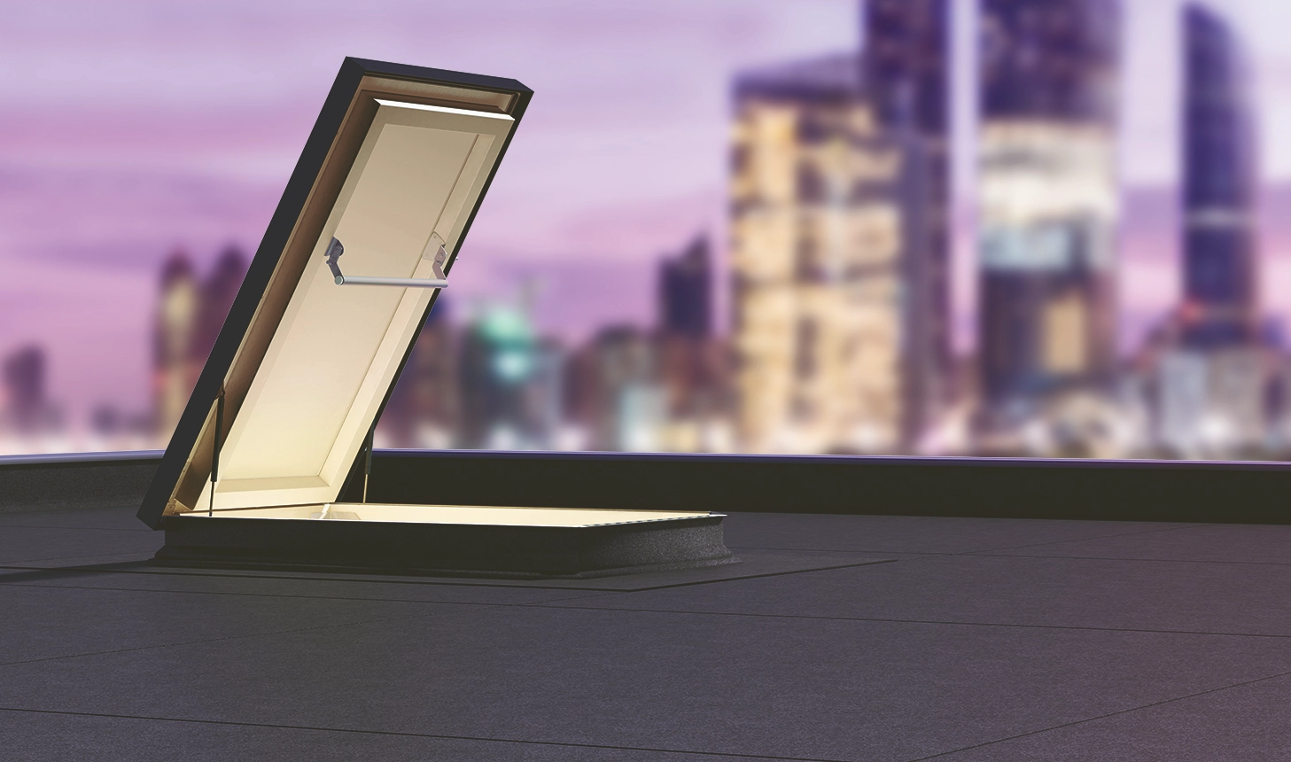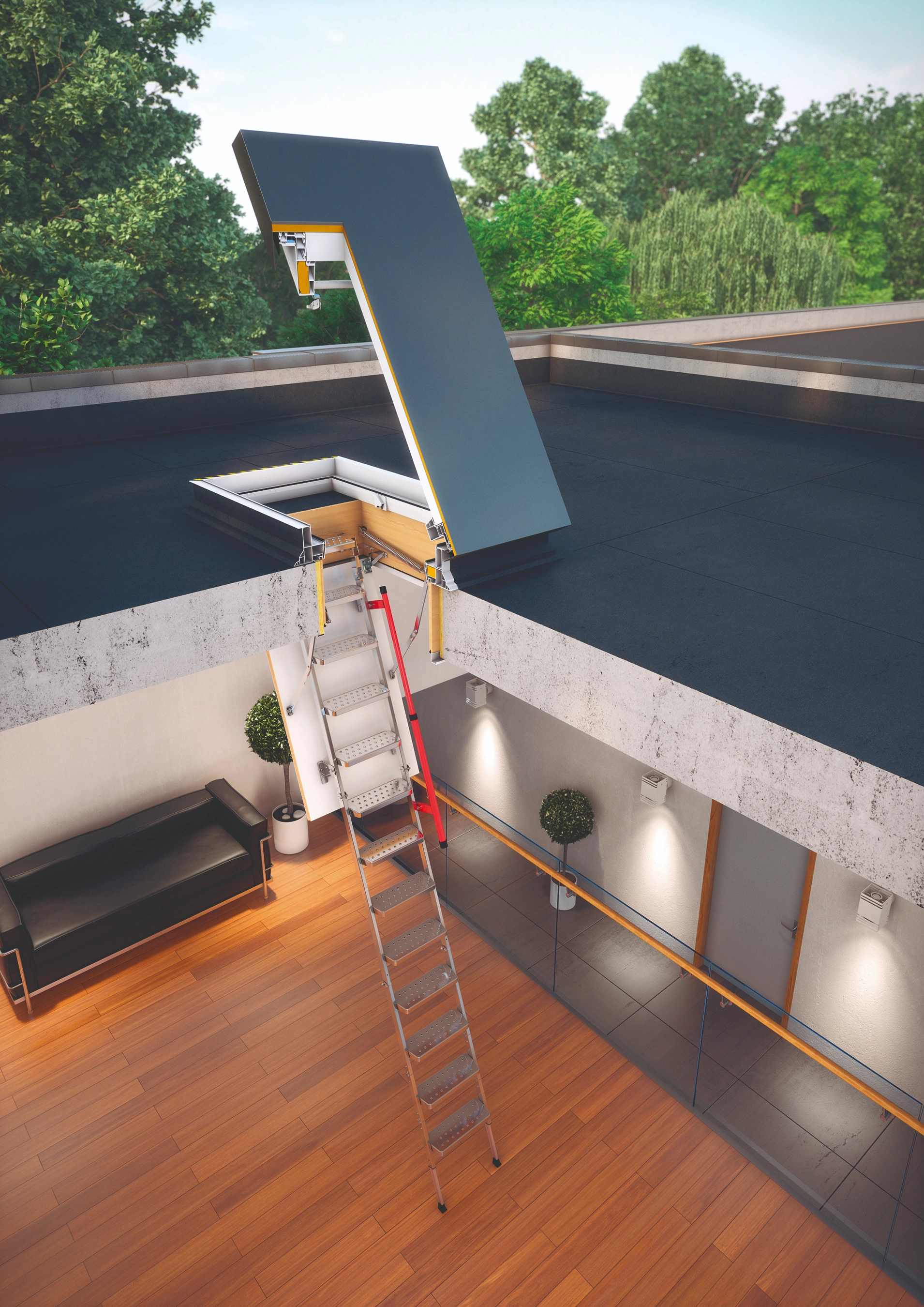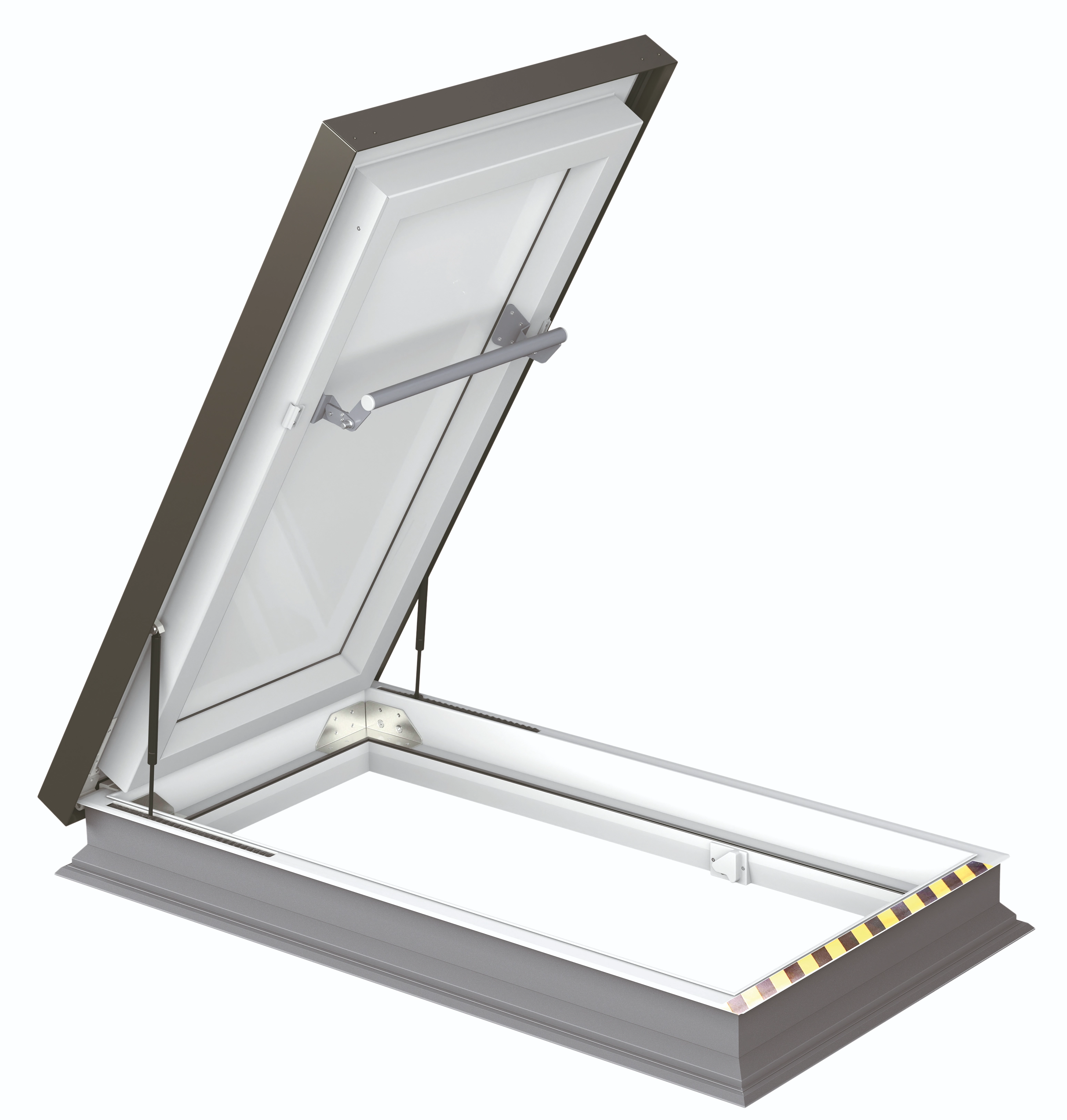 umożliwia pozostawienie skrzydła w otwartej pozycji. - Taśma antypoślizgowa na podstawie zapewnia bezpieczny dostęp do płaskiego dachu.