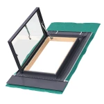 - Wyłaz jest wyposażony w uniwersalny kołnierz uszczelniający idealny do wielu rodzajów pokryć dachowych.