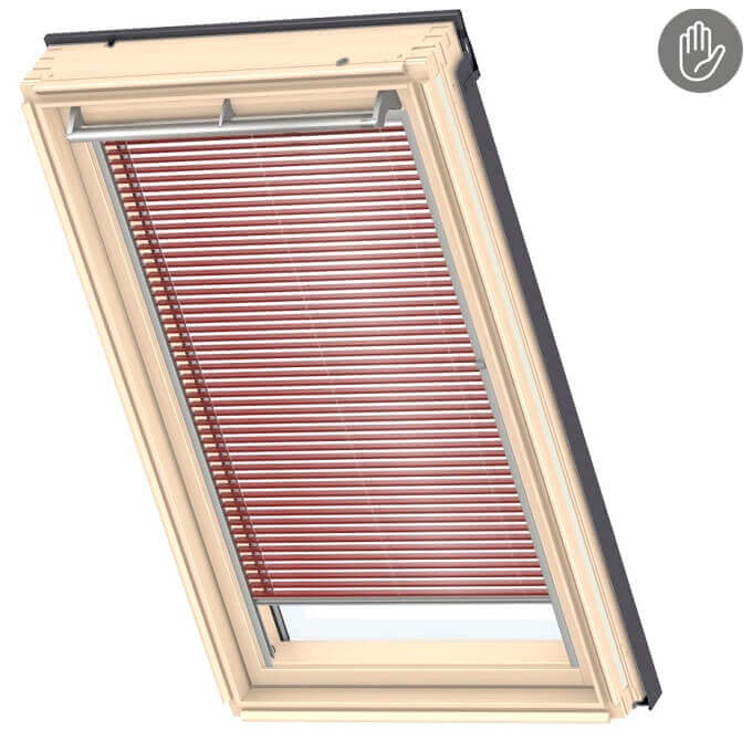 Manualnie obsługiwane żaluzje są niezwykle łatwe w użytkowaniu. W przeciwieństwie do tradycyjnych żaluzji, do obsługi żaluzji VELUX niepotrzebne są żadne sznury ani linki. Pozycję żaluzji reguluje się korzystając z uchwytu znajdującego się w dolnej części żaluzji. Wystarczy złapać uchwyt pozycjonujący i podnieść lub obniżyć rolety, aby umieścić je w dogodnej dla siebie pozycji. W celu regulacji listew i kąta docierającego do wnętrza światła wystarczy przesunąć do góry lub w dół uchwyt regulacji nachylenia znajdujący się po prawej stronie. Uchwyt ten można umieścić w dowolnym miejscu na bocznej prowadnicy.